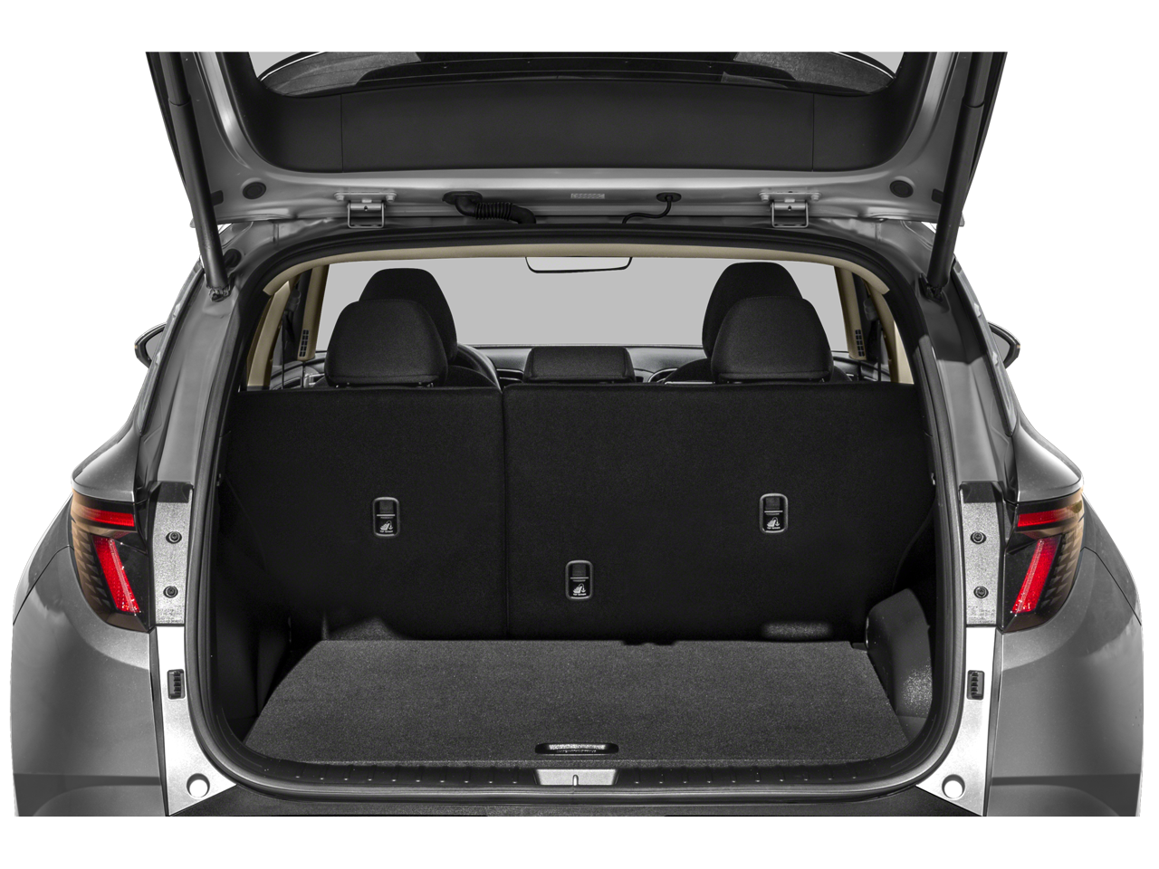 The Limited trim loads this SUV with features normally found in luxury brands. The cabin includes cooled front leather seats, heated front and rear seats, a heated steering wheel, power front seats with lumbar, seat memory, a panoramic sunroof, dual-zone climate control, remote engine start, keyless start, Bluelink connected services, 2 rear seatback storage pockets, 12V outlets, and full cargo-area concealed storage. The rear bench offers excellent space plus a pass-through for longer items.
